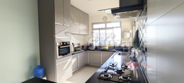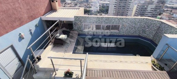 No 1° piso possui 2 amplas salas, sacada, cozinha com ilha completa de armários planejados, área de serviço com armários planejados, 3 dormitórios com armários (sendo 2 suítes). No 2° piso possui sala 2 ambientes, uma suítes com armários embutidos, e ampla área externa com varanda com churrasqueira e armários, terraço piscina, vestiário e banheiros masculinos e feminino, amplo terraço com vista em 180° da cidade. O APARTAMENTO tem 3 vagas de garagens paralelas.