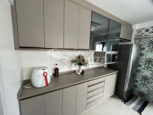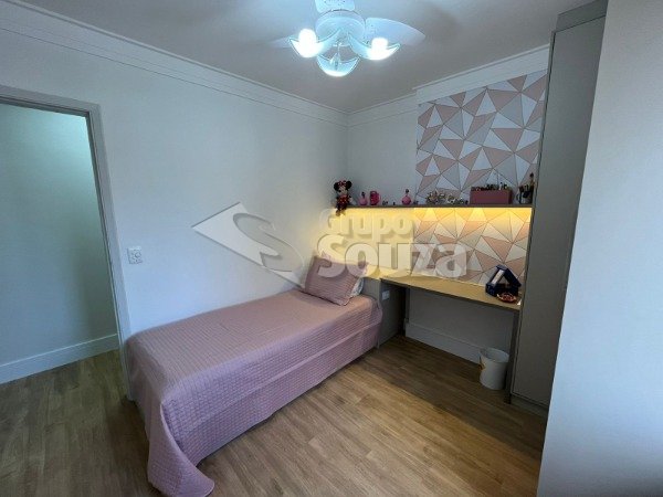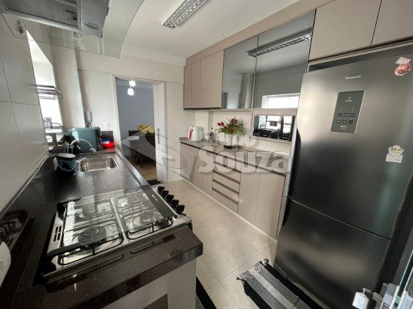 O imóvel possui 80m² de área útil, que são distribuídos em sala de 2 ambientes, 2 dormitórios com armários embutidos, cozinha planejada com armários embutidos, área de serviço, 1 banheiro social equipado com (box, espelho e gabinete), e, 1 vaga de garagem no condomínio sendo coberta.