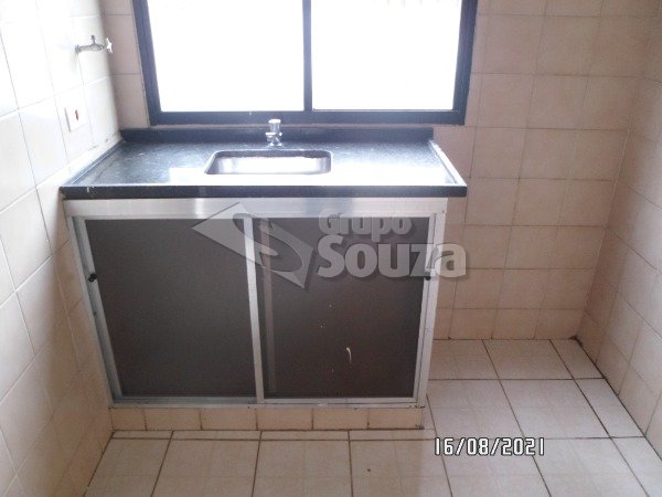 01 vaga, sala, 01 dormitório com armário, banheiro social completo c/box acrilico, cozinha c/gabinete e armário, área de serviços. Elevador, gás.