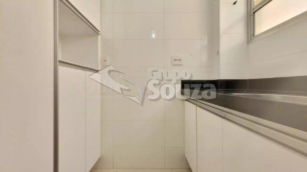 O APARTAMENTO para comprar é repleto de armários em todos os ambientes, e conta com sala, cozinha com pia de granito e gabinete, área de serviço, 2 dormitórios, 1 banheiro social e 2 vagas de garagem cobertas.