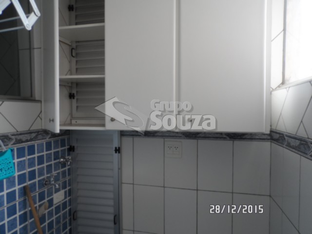 Sala de visitas, 2 dormitórios com AE, banheiro social completo, cozinha com fogão e armário, área de serviço.