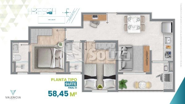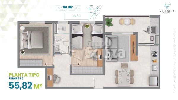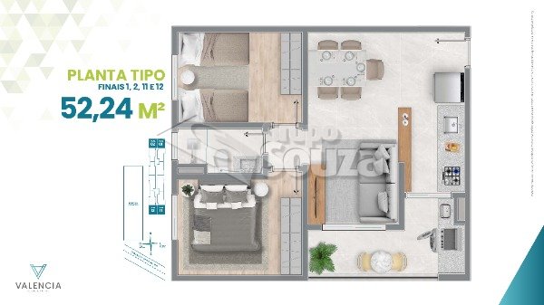 Varias opções de plantas com metragem de 52mm2 a 92,74 m² com 2 dormitórios (opções com suíte), passagem para 3 pontos de ar condicionado, esquadrias de alumínio branca com persiana integrada, varanda em todos os APARTAMENTOs com ponto de gás, infraestrutura preparada para aquecedor a gás,