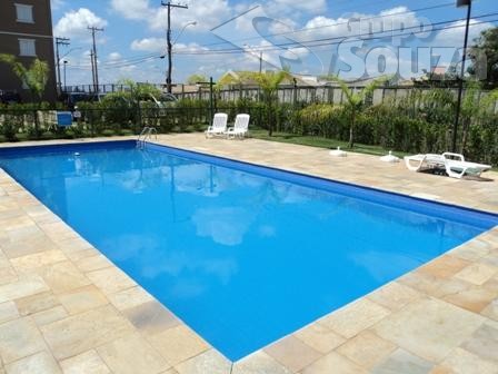 Lazer com piscina, salão de festas, playground.