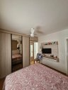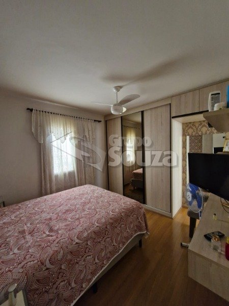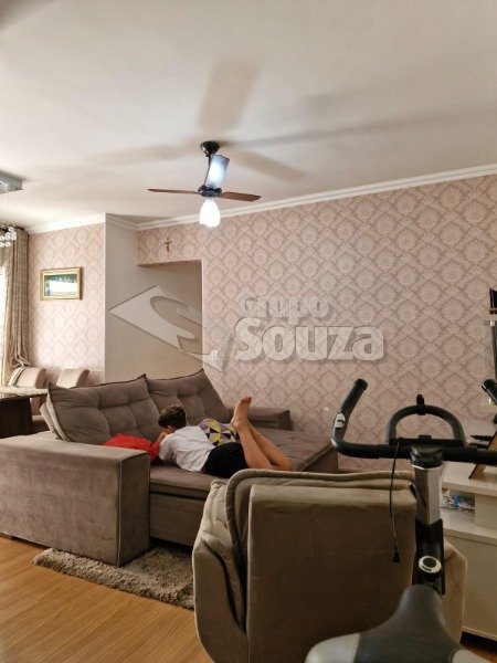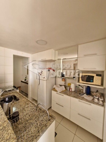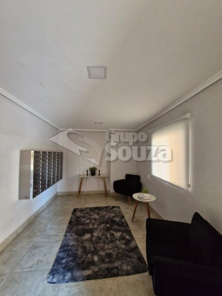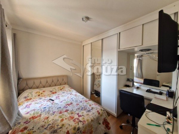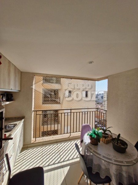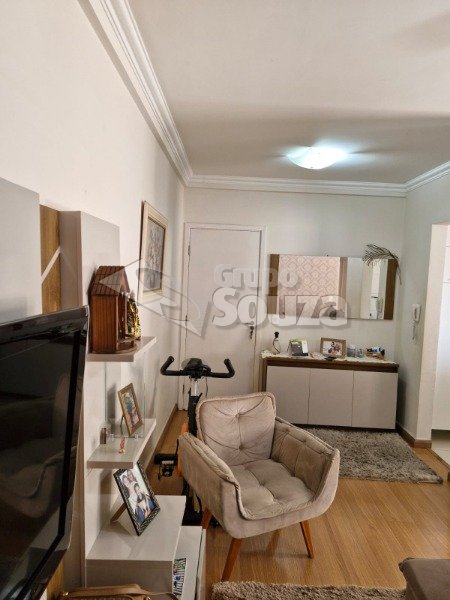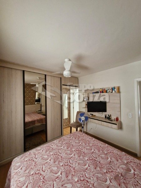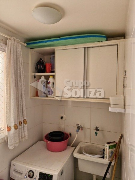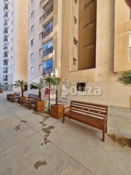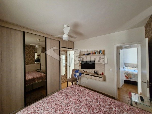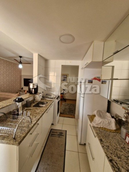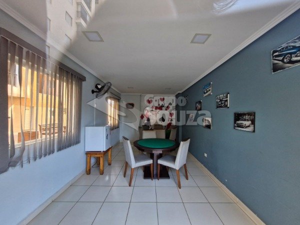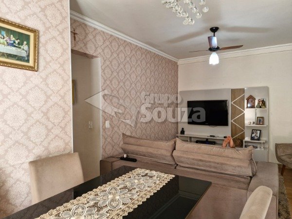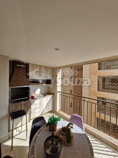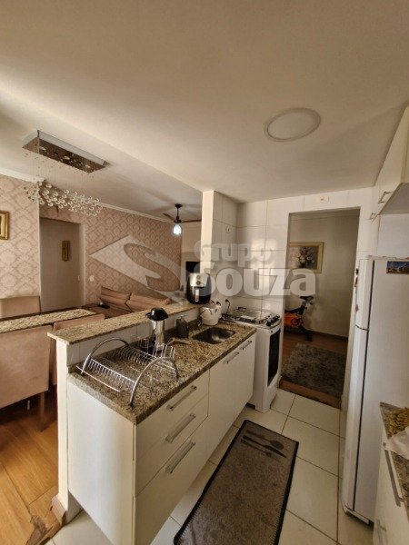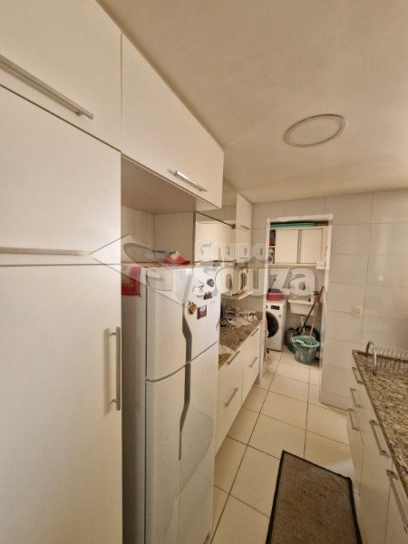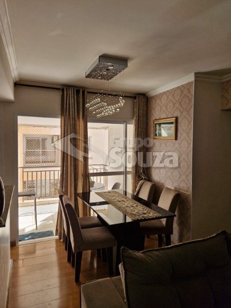 O imóvel é composto por 80,00 m² de área útil, que são distribuídos em cozinha equipada com armários planejados, sala de estar e jantar, com uma mesa de jantar elegante e uma TV, 3 dormitórios (sendo 1 suíte equipado com armários planejados), 1 banheiro social, área de serviço, e, 1 vaga de garagem.