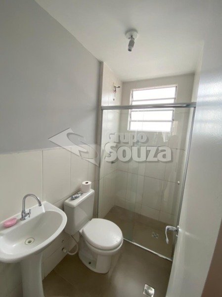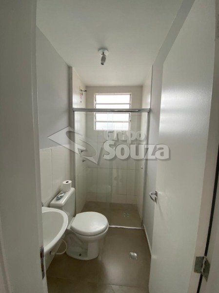 Apto- 02 dormitórios, sala, cozinha, área de serviço, banheiro social com 01 vaga.