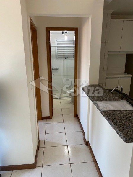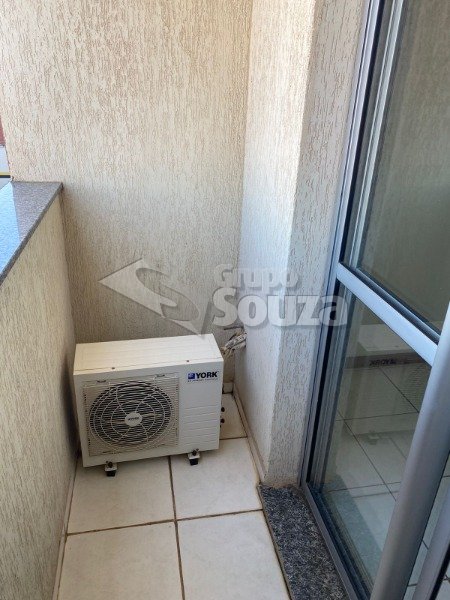 01 vaga coberta, sala, cozinha com armário, 01 dormitório com ar condicionado e armário embutido, banheiro social com box blindex, área de serviço.