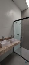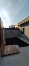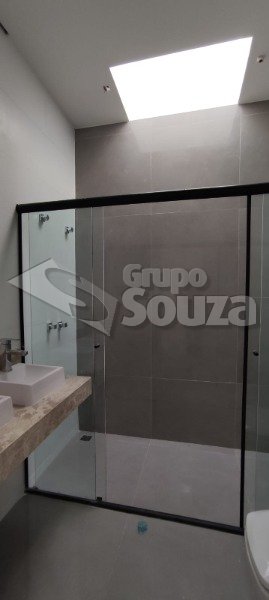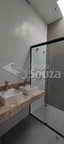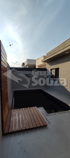 Casa em Condomínio, com 3 dormitórios, sendo 1 suíte, com piso porcelanato, sala ampla com pé direito de 5 metros de altura aonde trás amplitude e uma melhor circulação. Cozinha conceito aberto com pedra São Gabriel. As pedras do w.c. travertino com boiler incluso, ambos com box instalado já, esquadrinhas todas no alumínio preto.Garagem coberta para 2 carros. Piscina e lavanderia.