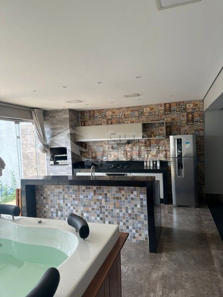 Área Gourmet com churrasqueira planejados e uma Master Hidro