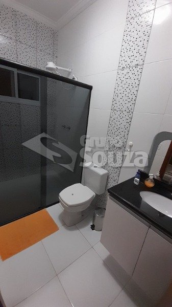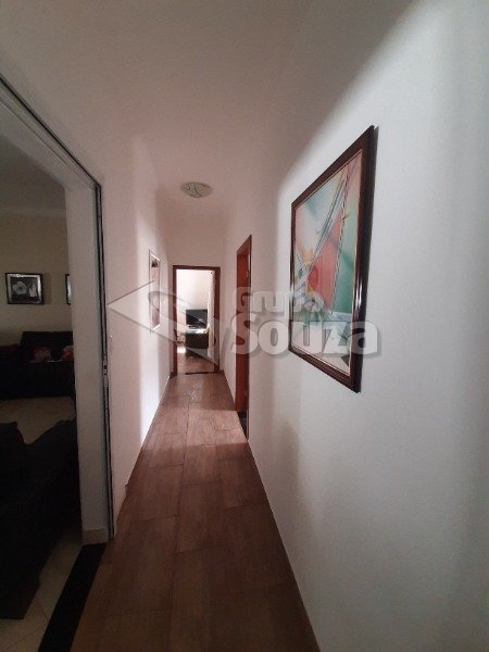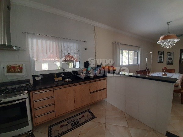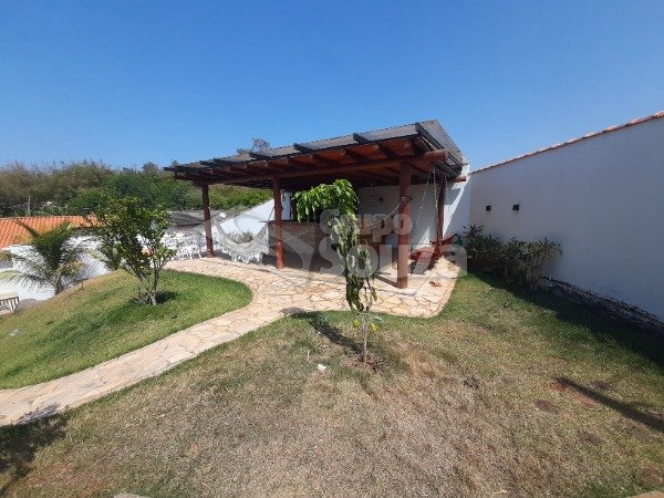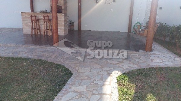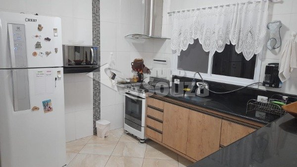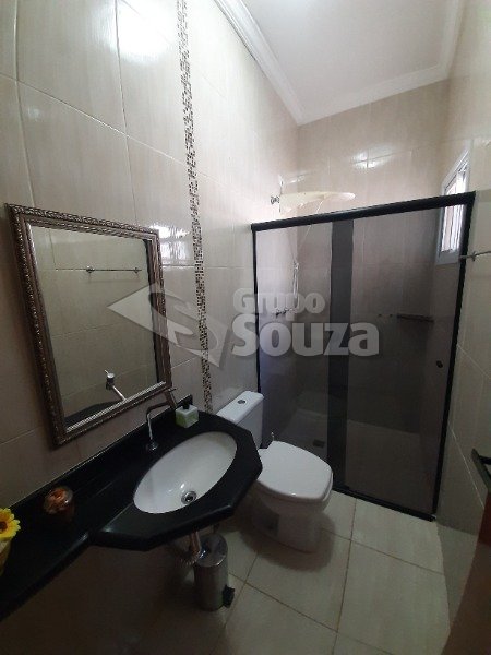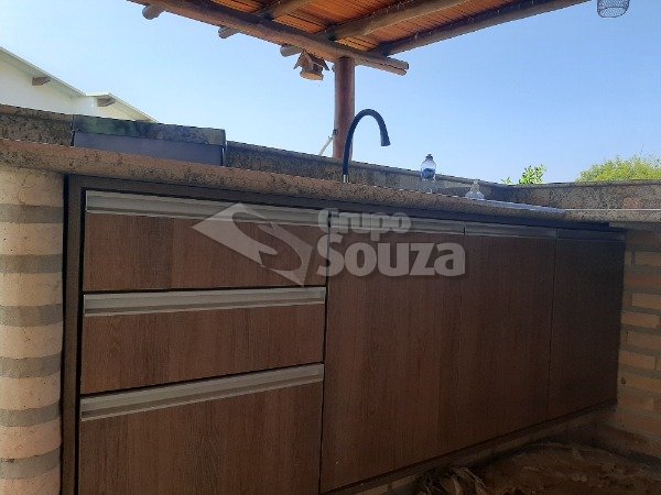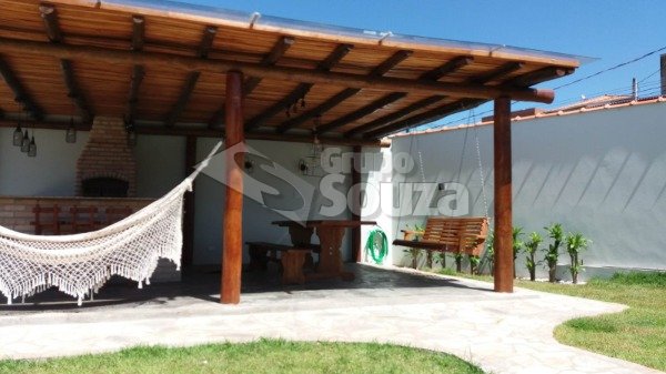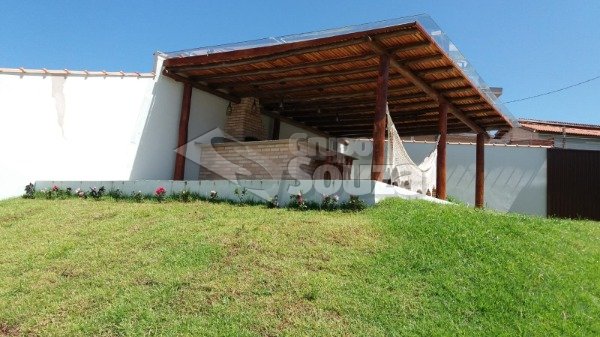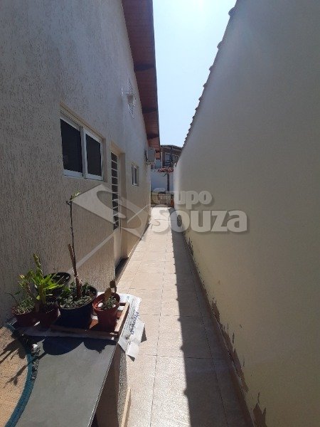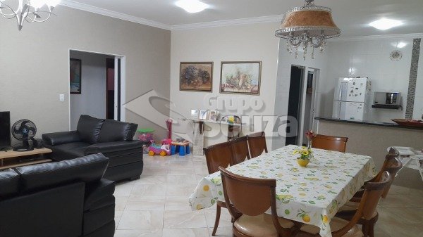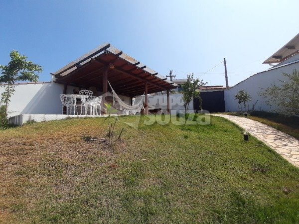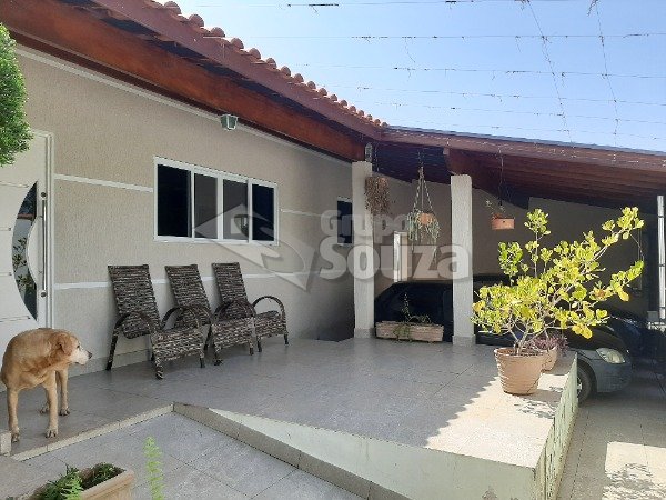 Excelente casa térrea com 3 suítes, banheiro social, sala e cozinha integradas, lavanderia, área externa com um amplo quintal contendo 11 árvores frutíferas, 1 pergolado com churrasqueira, pia e armário embutido, edícula com banheiro, depósito e mais 1 dormitório/escritório, vagas para 3 carros sendo 2 cobertas, com portão eletrônico, e uma descoberta, armários embutidos na cozinha, despensa, escritório externo e em uma das suítes.