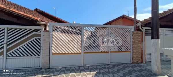 CASA TÉRREA GEMINADA com 100 metros construídos - a 150 metros da praia sendo 2 Dormitórios com 1 Suíte - banheiro Social sala ampla - Cozinha Americana - área de serviço coberta - espaço gourmet com churrasqueira e 2 Vagas de Garagem.