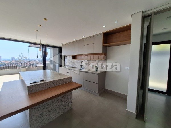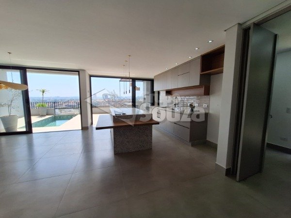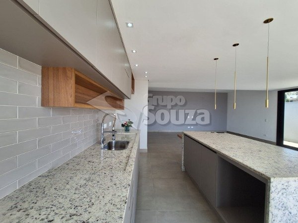 Cozinha integrada a uma sala ampla, criando um ambiente moderno e acolhedor;