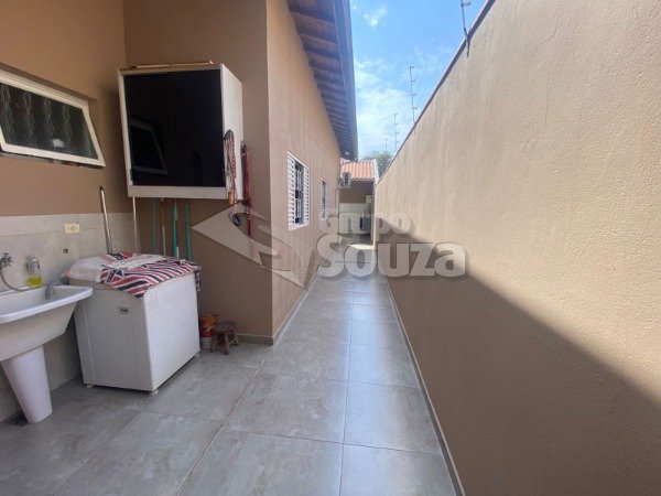 SALA, SALA DE JANTAR, BANHEIRO SOCIAL C/ GABINETE E BLINDEX, 3 DORMITÓRIOS SENDO 1 SUITE, COZINHA PLANEJADA, LAVANDERIA COBERTA, ENTRADA LATERAL, ESPAÇO GOURMET, GARAGEM P/ 2 CARROS COBERTO, PORTÃO ELETRÔNICO