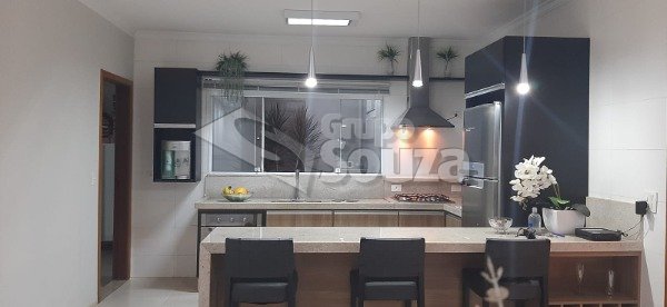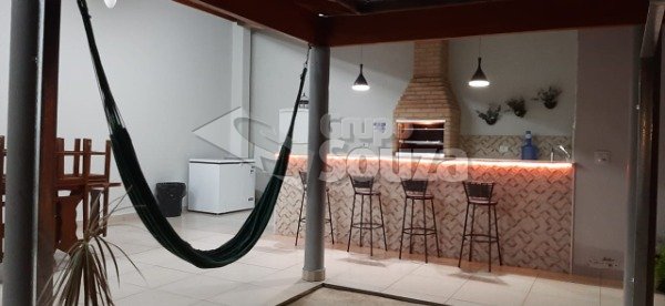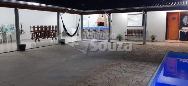 # contendo 2 dormitórios, 2 banheiros, cozinha com balcão 3,5m de granito, churrasqueira (porte gde), piscina 3x6.