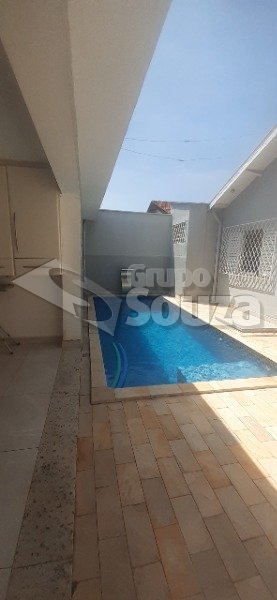 Nos fundos, quintal com piscina, churrasqueira e edícula com banheiro e dormitório com armário.