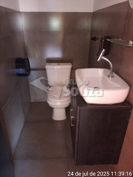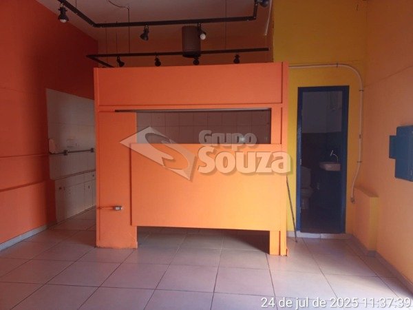 Salão comercial medindo 43,40m², 03 portas de aço, banheiro e copa.
